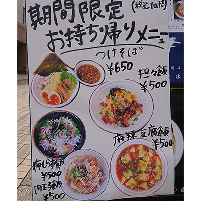 11時~21時 (現在緊急事態宣言に応じてテイクアウトの営業は11時~18時まで)